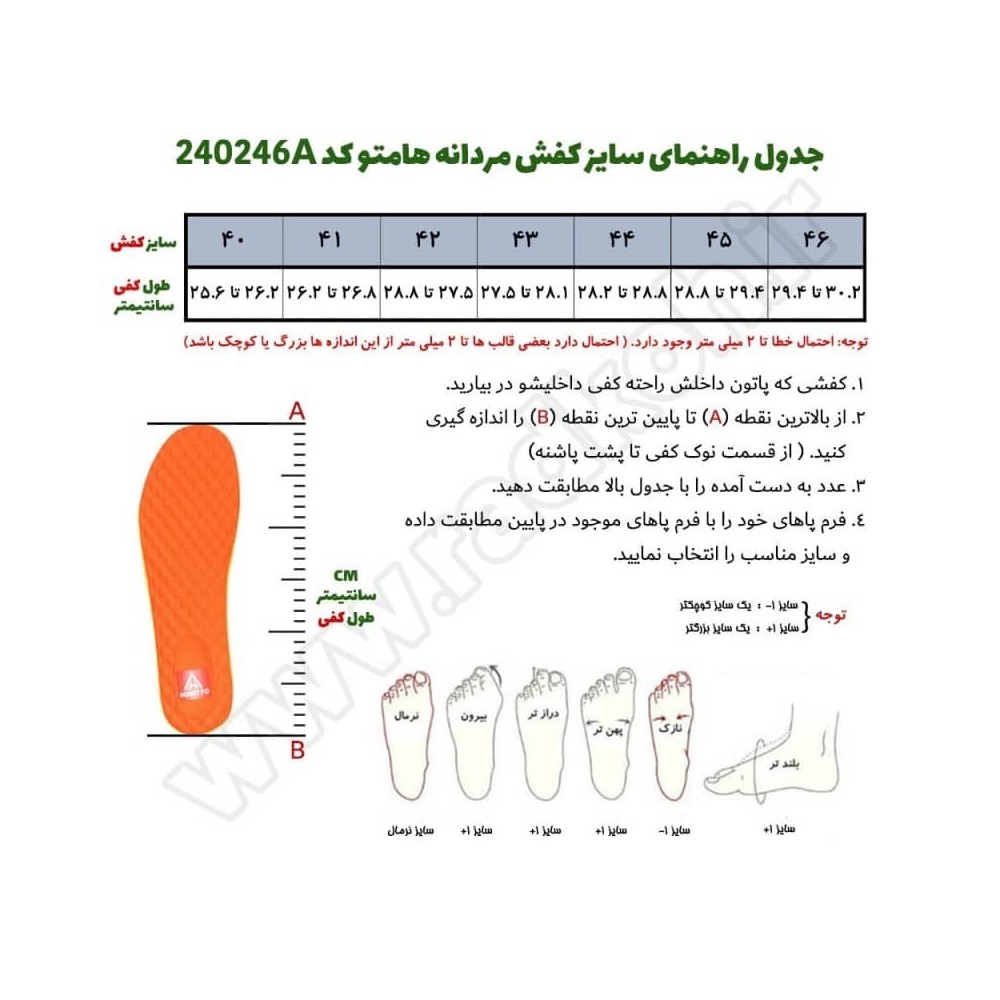 کفش طبیعت گردی مردانه هامتو مدل 240246A-2 | راهنمای سایز مناسب