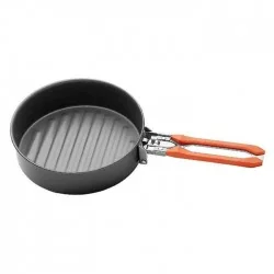دستگیره ی استیل با روکش ABS علاوه بر خوش دست بودن، در برابر حرارت مقاومت بسیار خوبی دارد و با قفل تاشوی محکم تبدیلش می کند به یک ماهیتابه جمع وجور و کاملاً امن داخل کوله پشتی. نه جا می گیرد، نه سنگینی می کند.