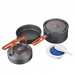 ست ظروف فایر مپل FMC-217 با طراحی فشرده، وزن سبک، انتقال حرارت بالا و وجود سوراخ های تهویه در قابلمه پایینی برای استفاده با اجاق های قابل حمل طراحی شده تا جریان هوا بهینه شود و شعله بهتر پخش گردد، انتخابی حرفه ای برای آشپزی در سفرهای ماجراجویانه است