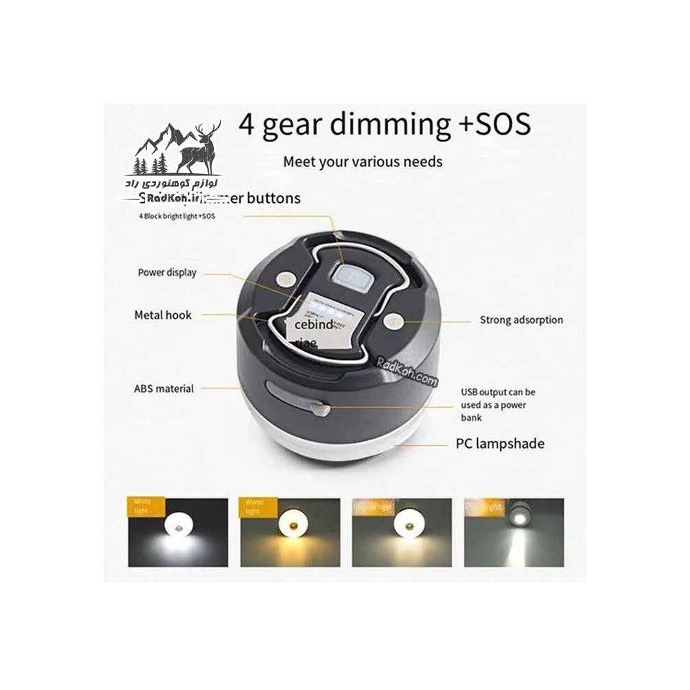 نوع چراغ قوه: چراغ چادر شارژی با نور گسترده و یکنواخت برای روشنایی داخل چادر یا اطراف کمپ.
