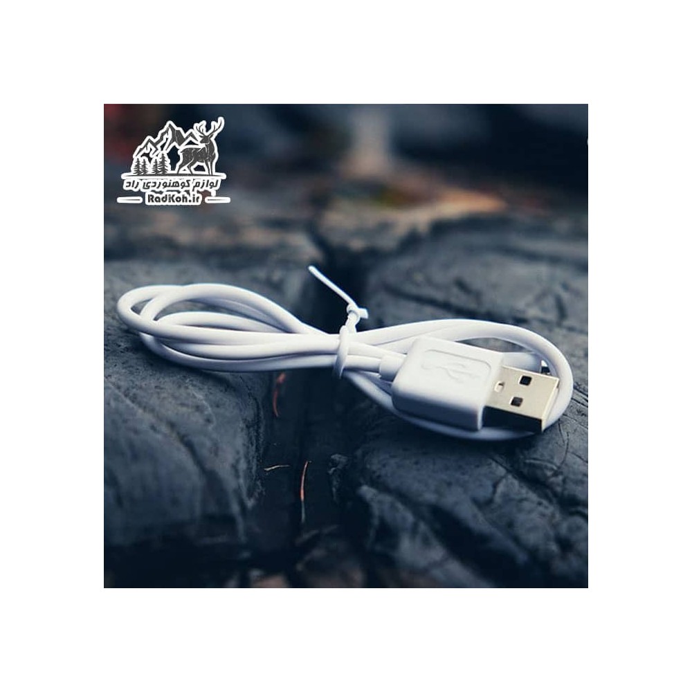 مجهز به بند قابل تنظیم، حالت SOS، نوع باتری: لیتیوم 1800mah، قابلیت نوردهی متمرکز و پراکنده، چشمک زن با فشار دکمه به مدت 1.5 ثانیه، شارژ با کابل USB