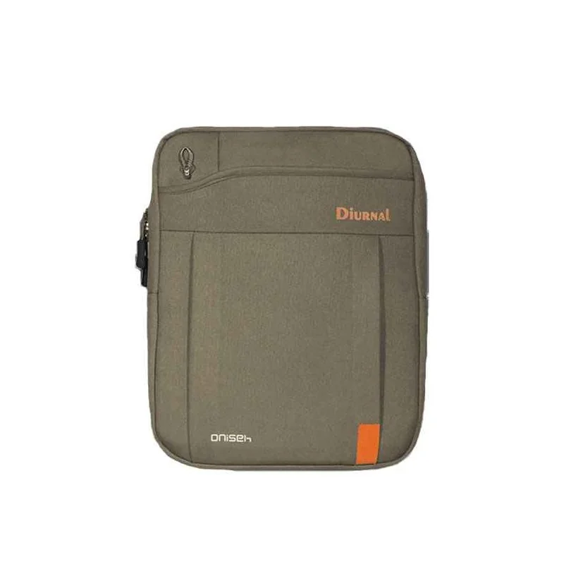 کیف دوشی انیسه مدل دیورنال بزرگ زیتونی، دارای 2 جیب زیپ دار در جلو برای نظم دهی بهتر به لوازم کوچک دسترسی سریع به کارت، هندزفری، کلید و لوازم تحریر