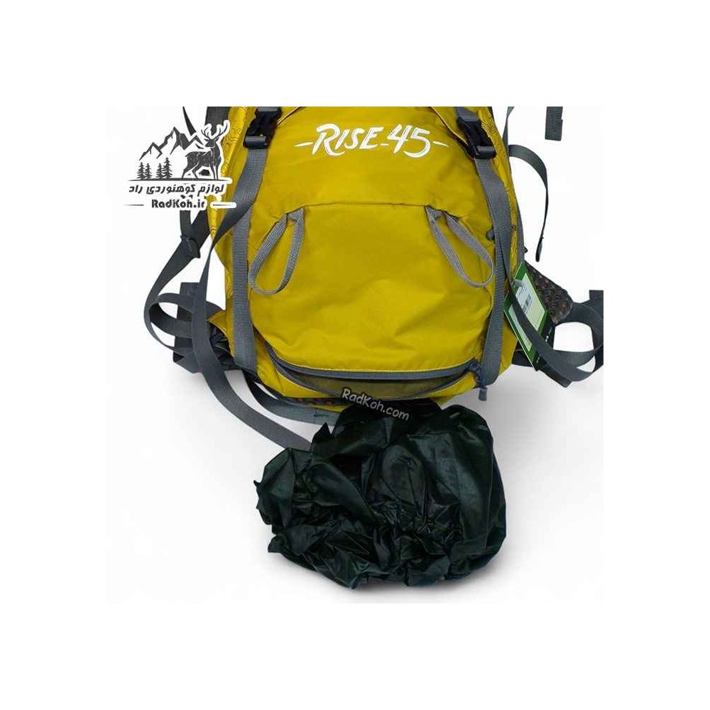 کوله پشتی مدل رایز 45 لیتری رنگ خردلی صخره مخصوص طبیعت و کوه | طراحی مدرن