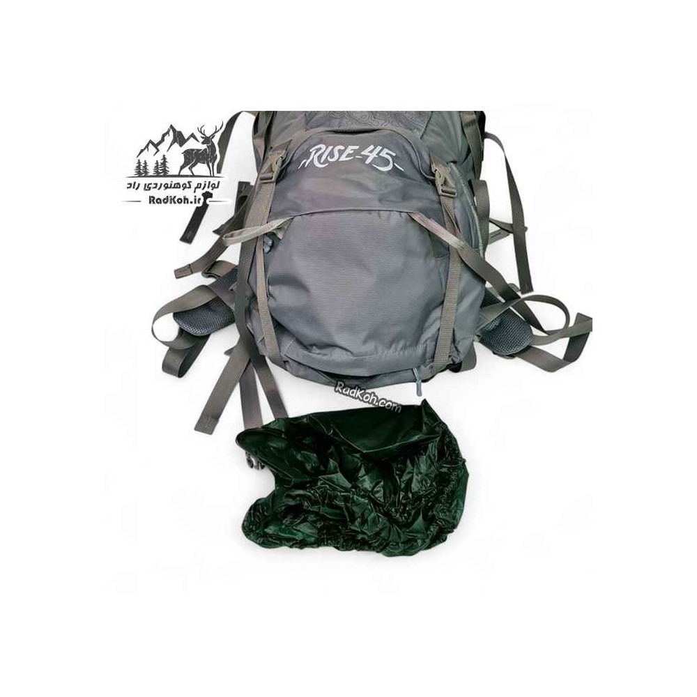 کوله پشتی کوهنوردی 45 لیتری صخره مدل رایز رنگ طوسی ضدآب قیمت جدید | مقاوم در برابر باران