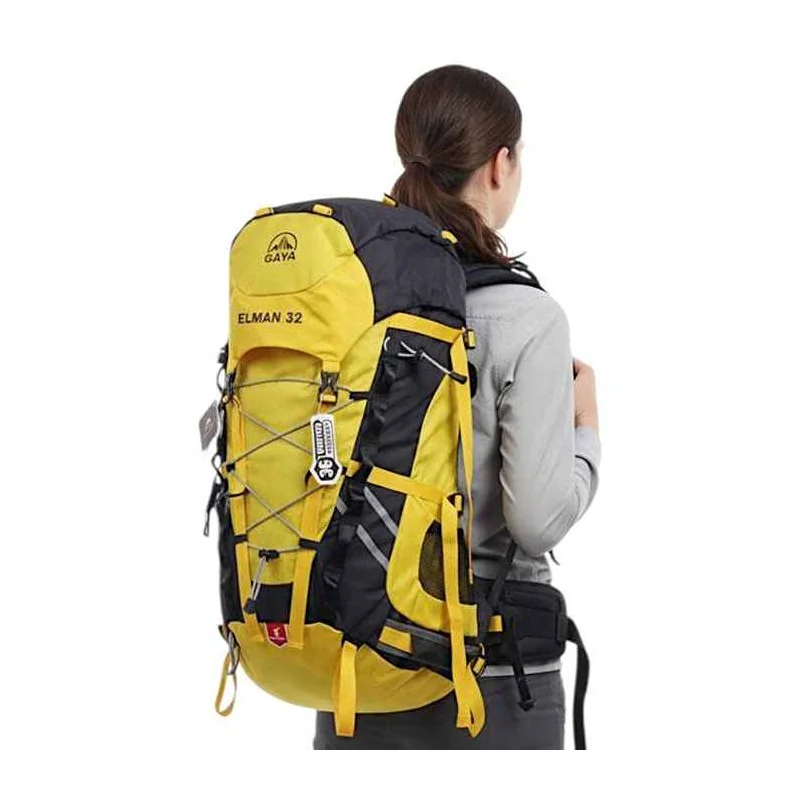 کوله پشتی 32 لیتری قایا مدل ایلمان زرد/مشکی، دارای سیستم تهویه پشت با طراحی مش بندی و فوم هوا کاهش تعریق و افزایش راحتی در مسیرهای گرم و طولانی.