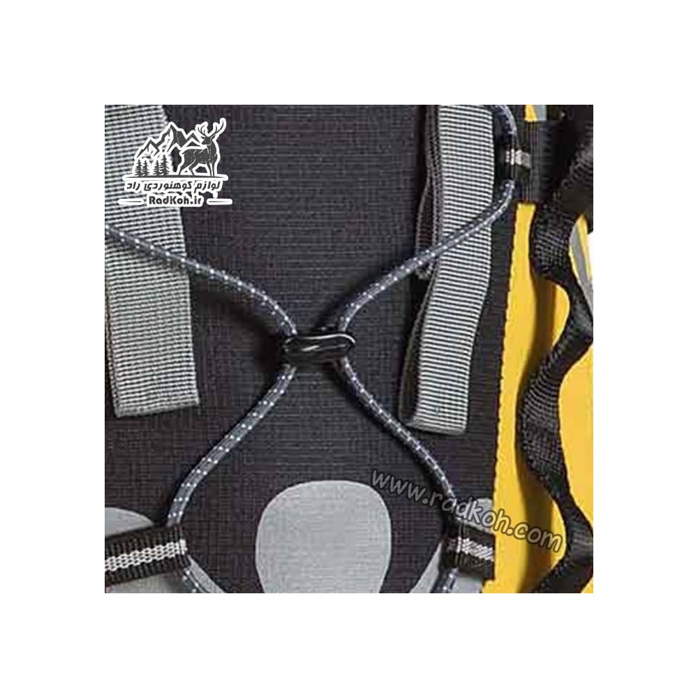 - دارای قسمت های شبرنگ برای دید بهتر در شب، دارای بندهای اتصال تبر یخ و باتوم، دارای خروجی آب