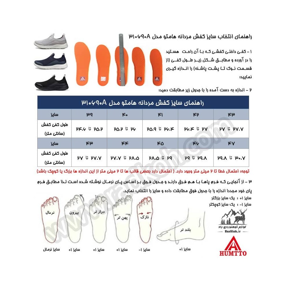 راهنمای انتخاب سایز کفش هامتو کد 230113A-1