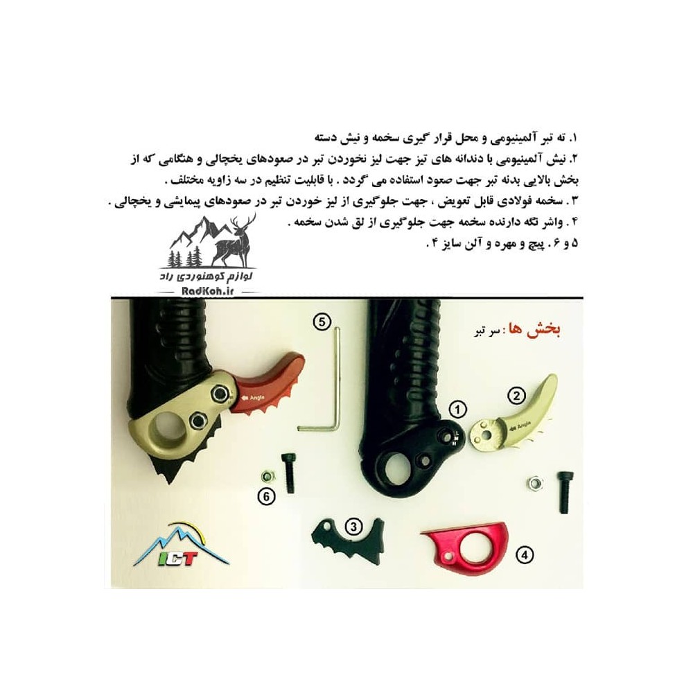 - قابلیت نصب تیغه قدیمی با تنظیم تیغه در سه زاویه مختلف جهت صعودهای مختلف عمود، یخچالی، پیمایشی