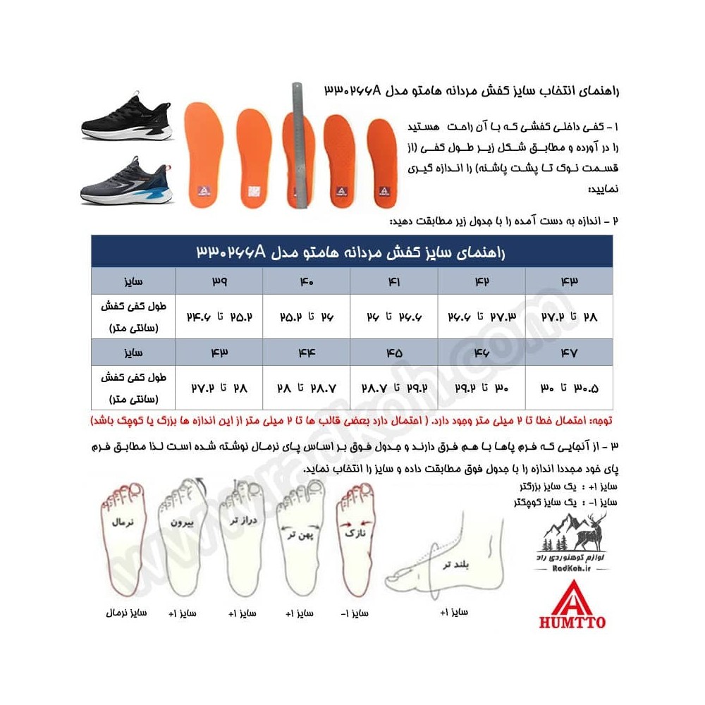 راهنمای انتخاب سایز کفش هامتو کد 260931A