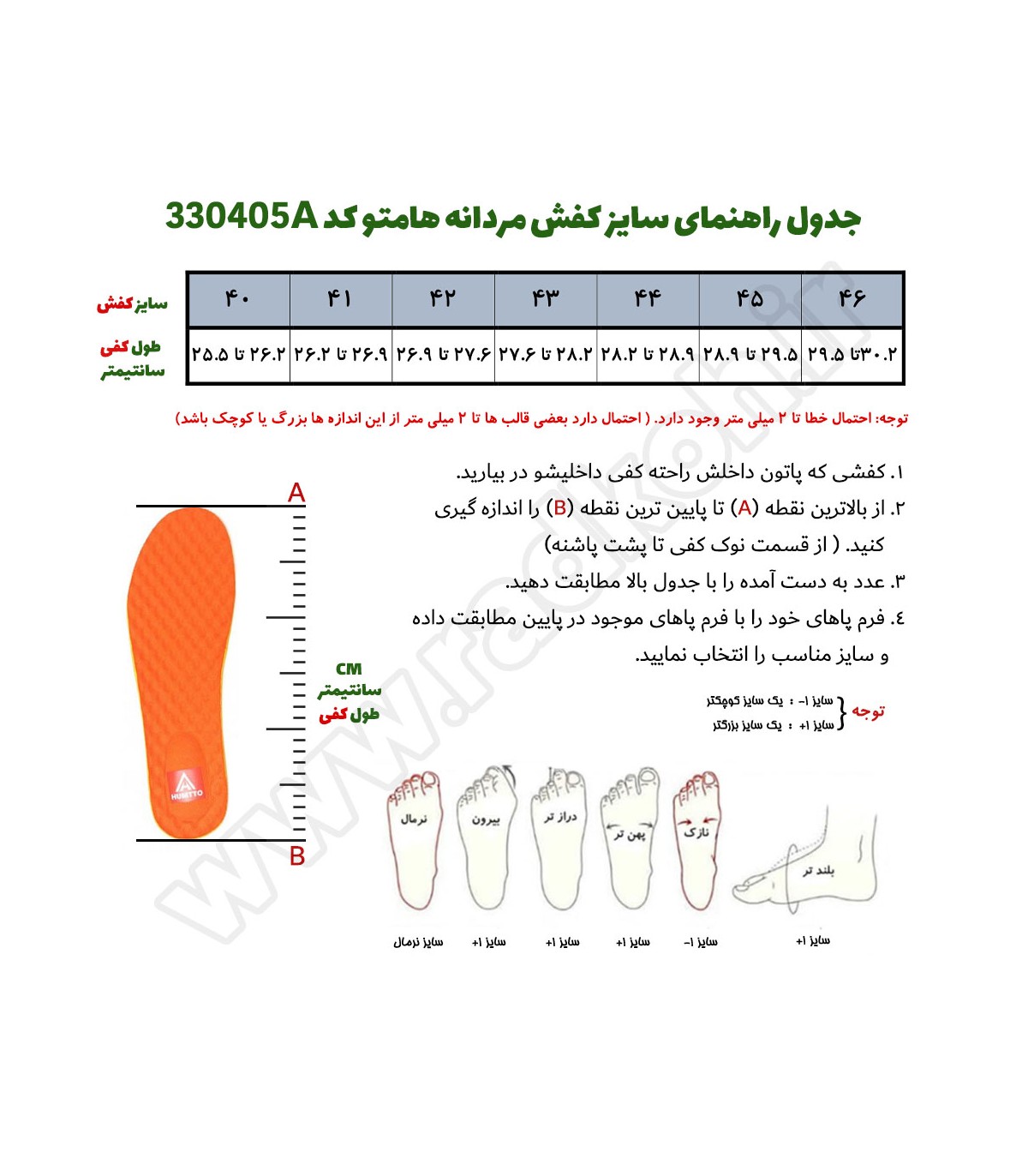 جدول راهنمای سایز کفش مردانه هامتو مدل 330405A-1