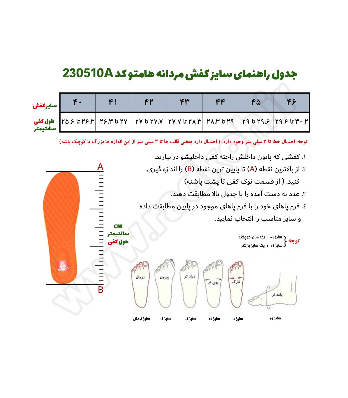 کفش شهری هامتو مردانه مدل 230510A-1 | راهنمای کامل سایز آن به روزشده و دقیق برای شما کفش