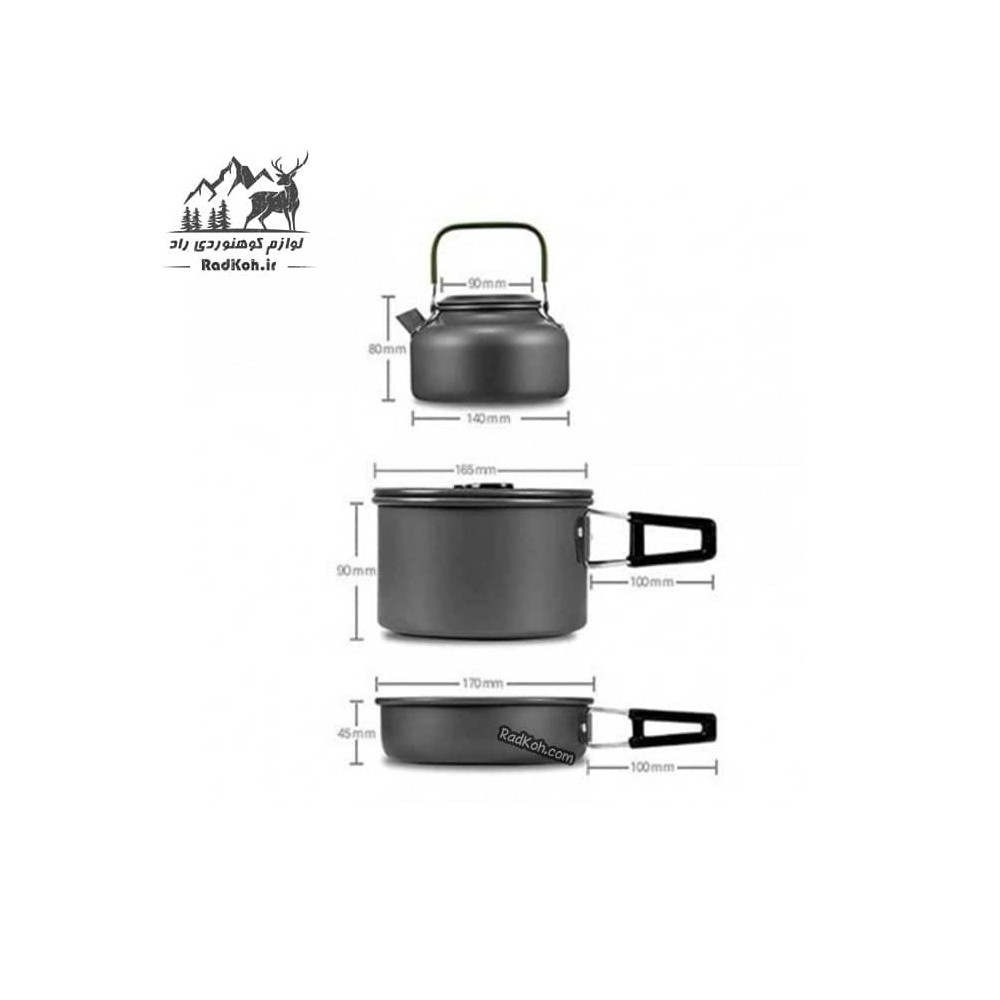 - قابلمه: 16.5*9 سانتی متر، ماهیتابه: 4.5*17 سانتی متر، کتری: 17.3*9.2 سانتی متر